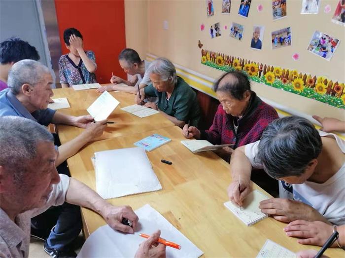 老人們一邊念一邊認真書(shū)寫(xiě)?