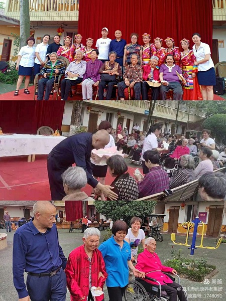 重慶市潼南區壽而康老年頤養中心載歌載舞、熱鬧掀天的慶節現場(chǎng)。