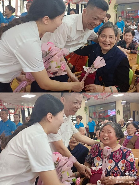 重慶市潼南區民政局何副局長(cháng)來(lái)到壽而康桂林院,向老人們敬獻康乃馨與媽媽們共享歡樂(lè )時(shí)光。