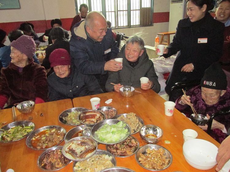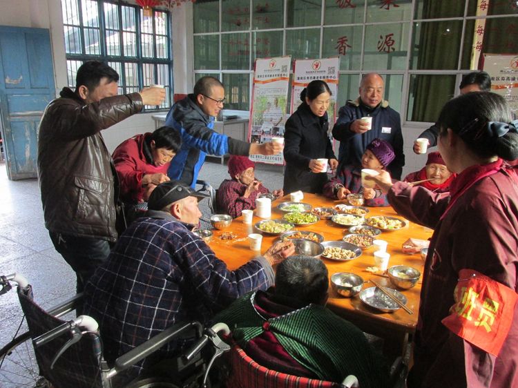 會(huì )后,午宴開(kāi)始。任總和王院長(cháng)帶頭向老人們敬酒并轉達來(lái)自公司曹董事長(cháng)的問(wèn)候。
