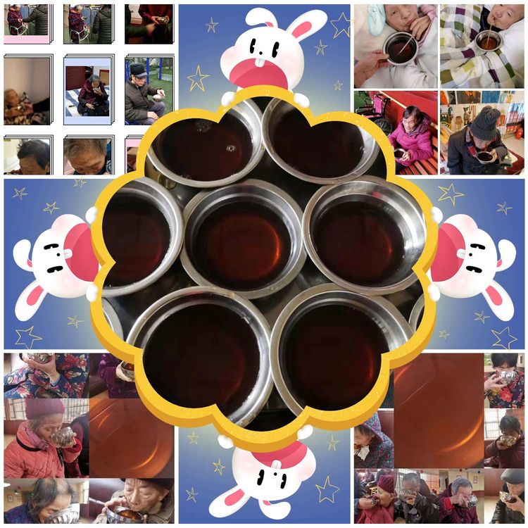熬制預防感冒的中草藥給老人們及員工服用,做好安全防護。